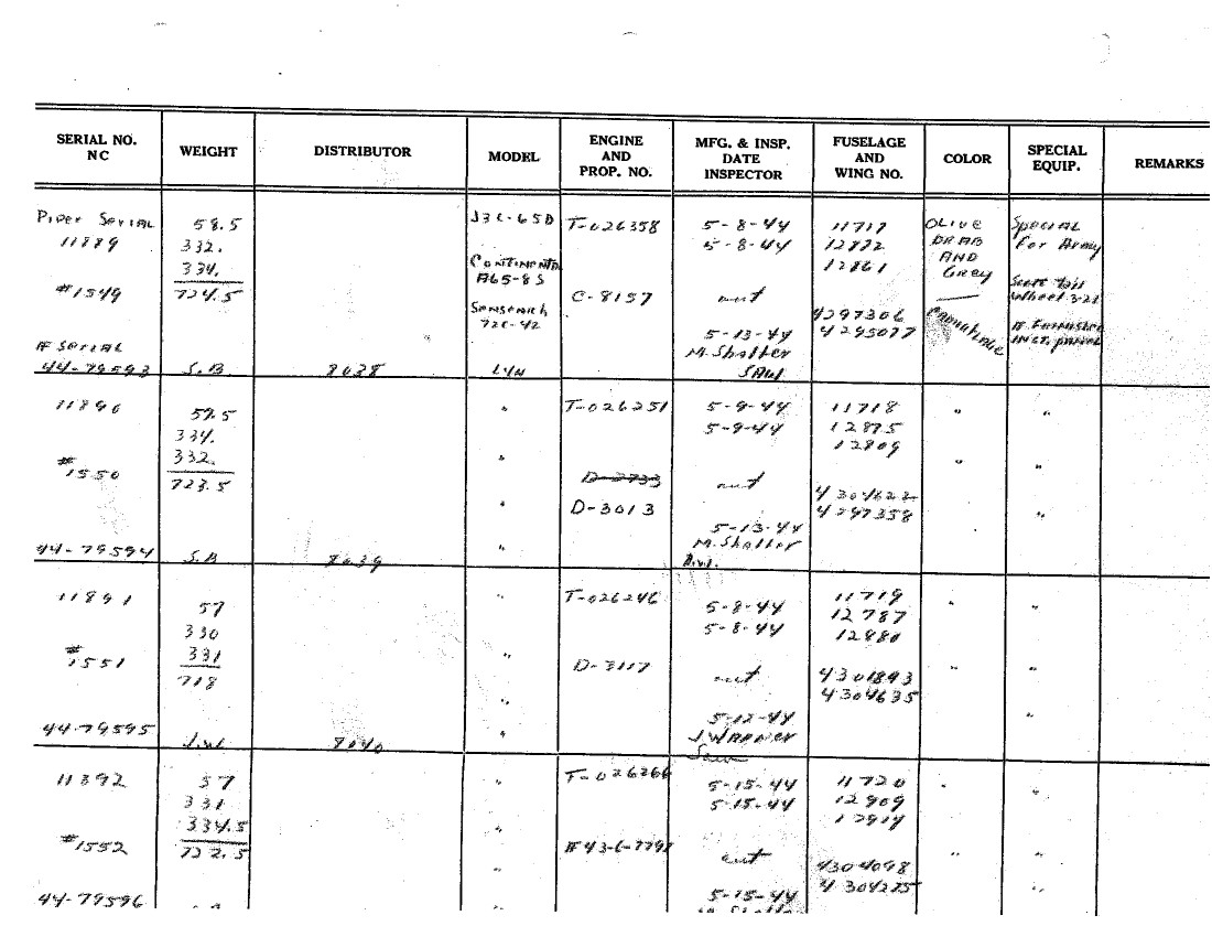 En effet, il a commencé sa carrière comme Piper L4H, sous le matricule militaire 44-79593, mais rassurez-vous, il n'avait pas ces couleurs là à cette époque !